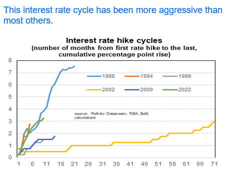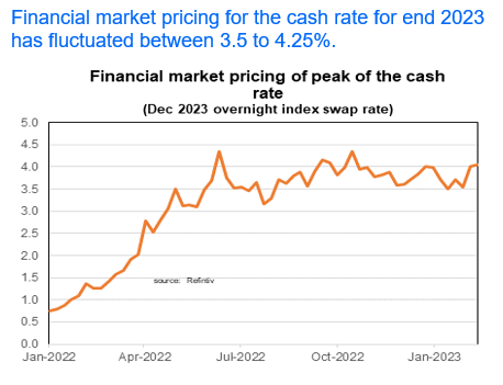 I still think 3.6% peak in the cash rate will be enough to get inflation back to target. My thinking was (and remains) that the shift up in the cash rate has been both large and quick, enough (together with the reduction in supply-chain problems) to get inflation back under control. The RBA clearly thinks the inflation risks are higher and believe a higher cash rate will be necessary.