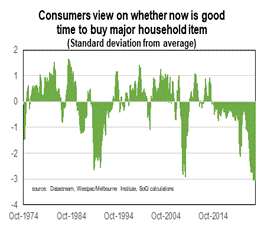 Analysts have pointed to the decline of retail volumes as the clearest sign of weakness in consumer spending. Certainly, there is no lack of supporting evidence for that view, whether that be survey’s about consumer spending intentions on households goods, their declining sentiment about the jobs market or their views about the current state of their household budgets.