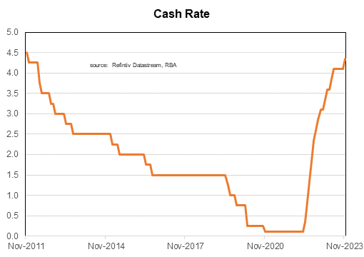 - The RBA increased the cash rate by a quarter percentage point at its November meeting (taking the cash rate to 4.35%);