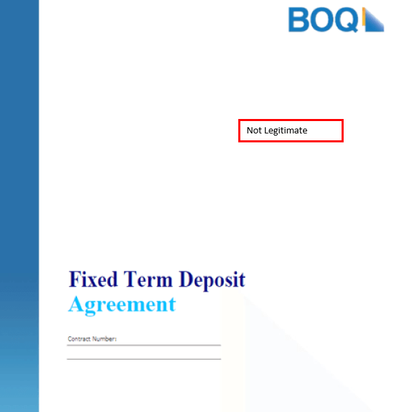 BOQ are continuing to report the prevalence of BOQ branded imposter investment scams, similar to what ASIC reported in January. Scammers are attempting to adopt the identities of legitimate BOQ employees and claiming to be selling BOQ Treasury Bonds or Capital Protected Fixed Income Government Funds.