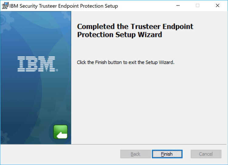 8. Once the installation is complete the following screen will appear showing the successful installation of IBM Trusteer Rapport, select Finish